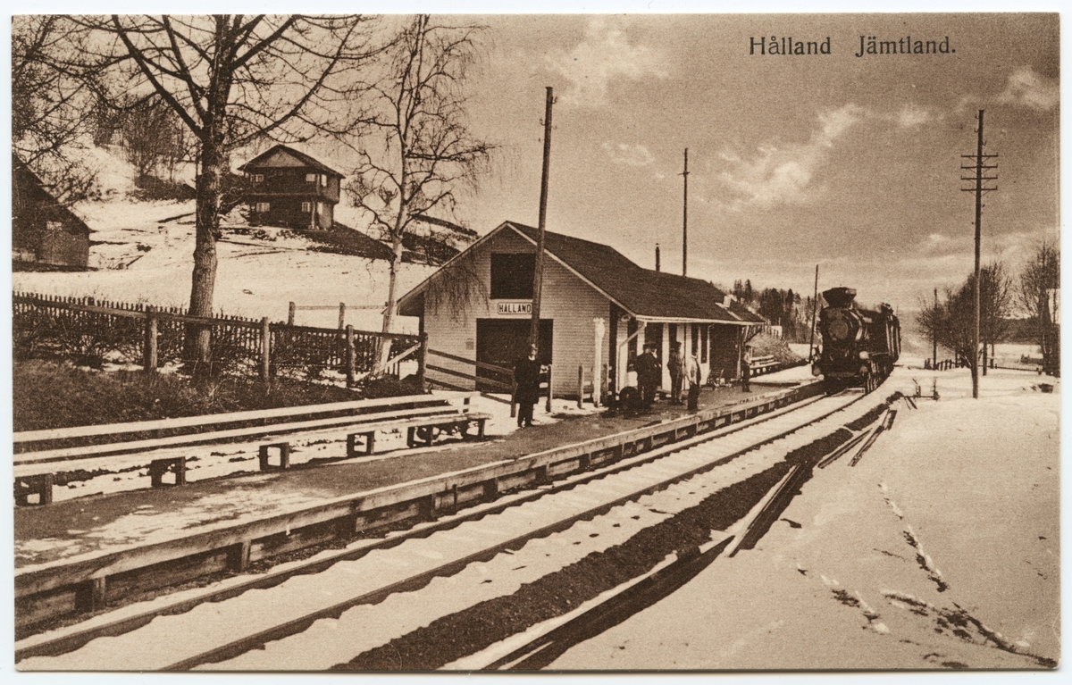 Ett E- ånglok anländer med tåg på Hållands järnvägsstation.