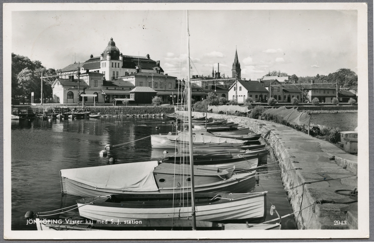 Titel: Västra kajen med järnvägsstation i Jönköping.