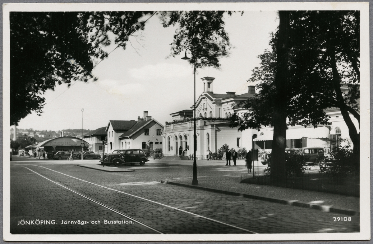 Titel: Järnvägs- och busstationen i Jönköping.