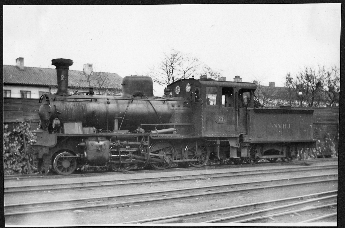 Norsholm - Västervik - Hultsfreds Järnvägar, NVHJ lok 23 på Västervik bangård.