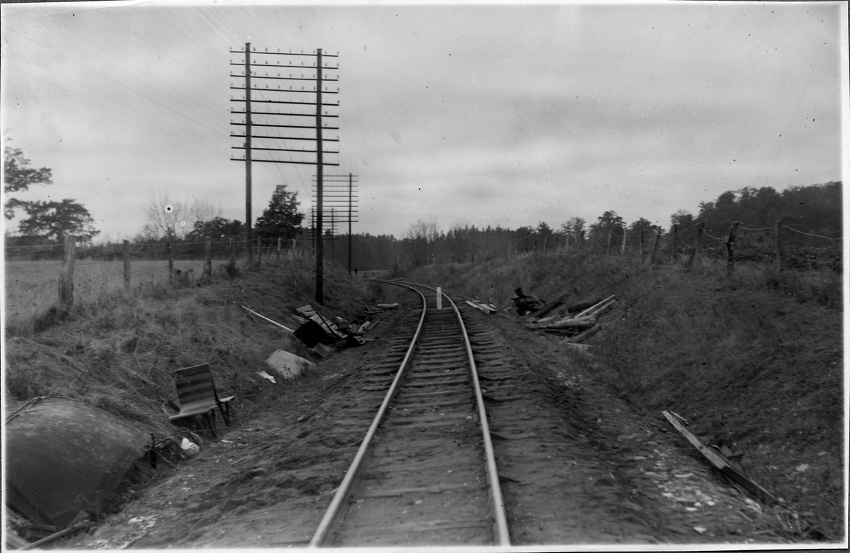 Platsen för olyckan på Norra Östergötlands Järnvägar, NÖJ, 1939. På linjen mellan Kimstad och Lillie i närheten av Aspa.