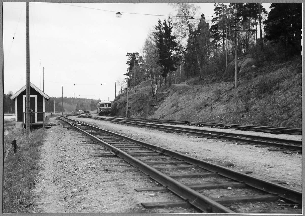 Titel: Rälsbuss på infarten till Finspång.