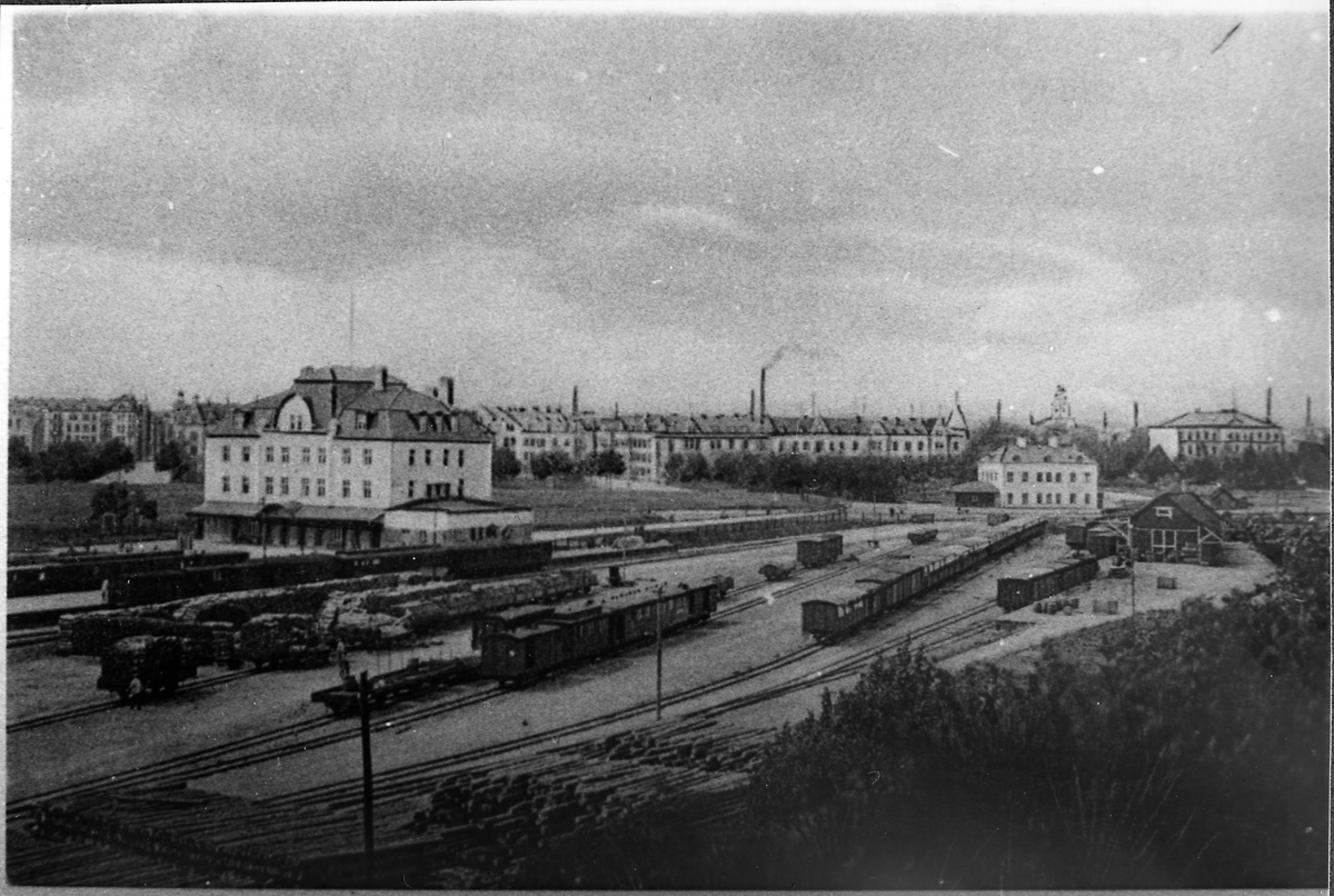 Titel: Norrköping Östra med det nya och det gamla stationshuset.