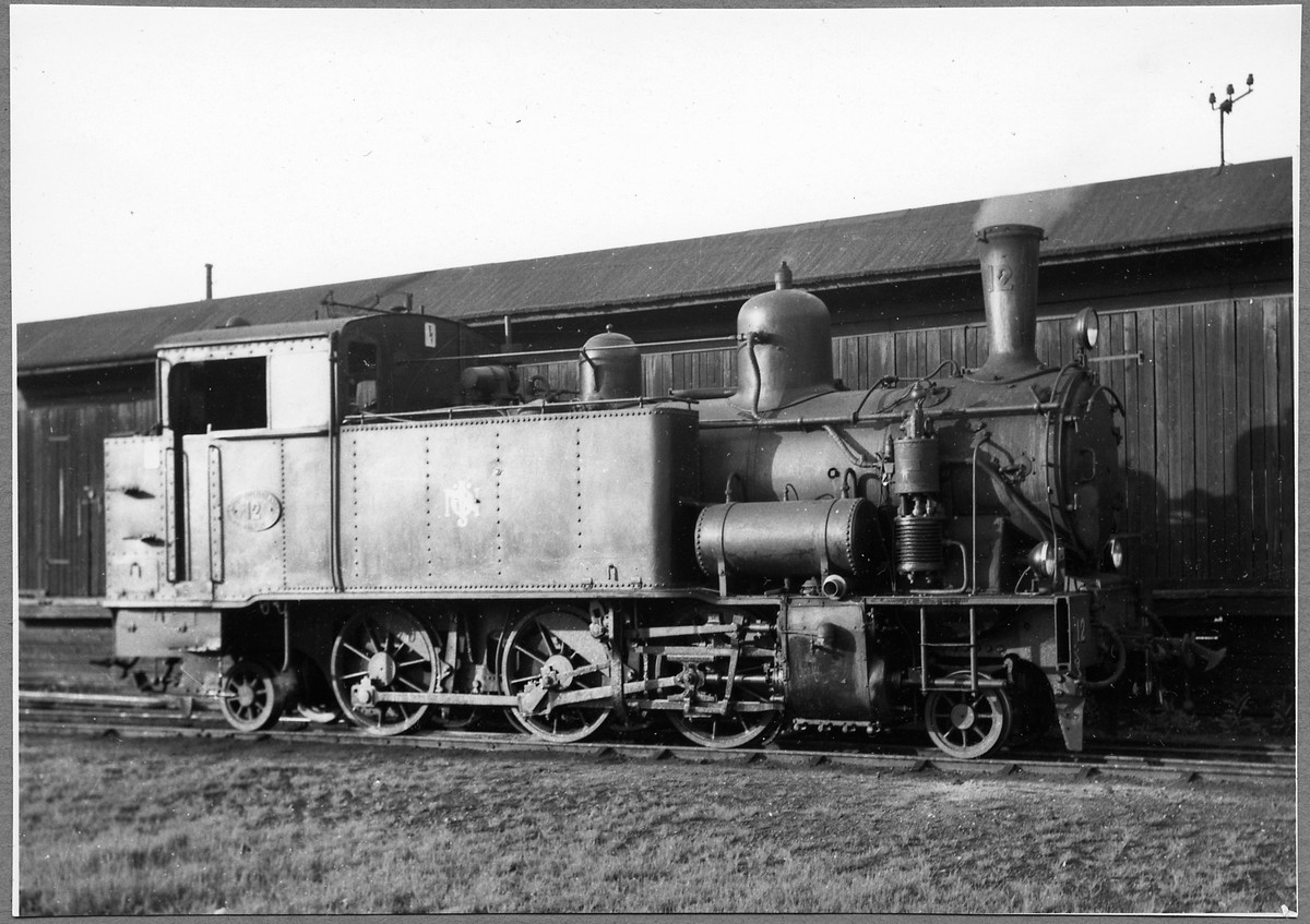 Ånglok, Norra Östergötlands Järnvägar, NÖJ lok 12, tillverkat av Nohab 1908 för spårvidd 891mm. Efter förstatligandet 1950 fick loket nytt nummer Statens Järnvägar, SJ S27p 3174.