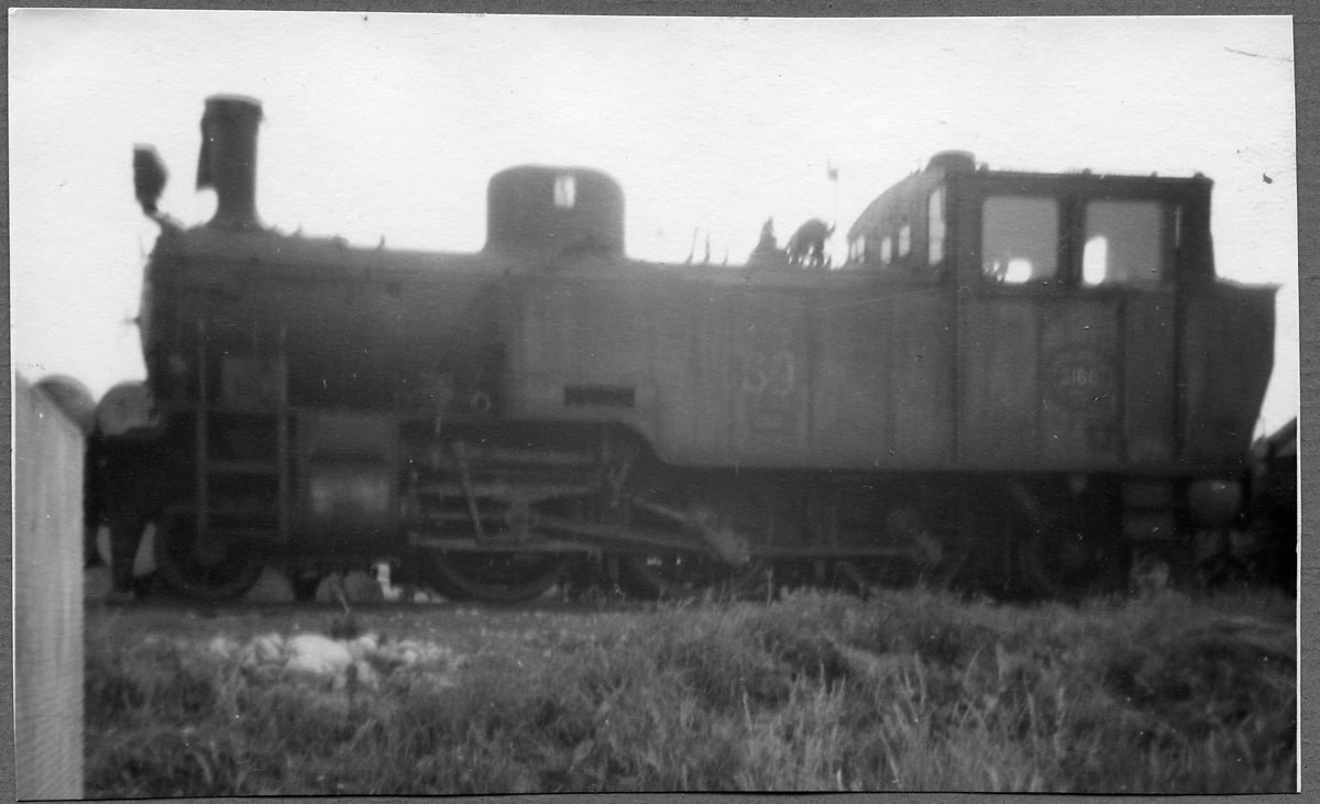 Statens Järnvägar, SJ S20p 3168. Ångloket är före detta Norra Östergötlands Järnvägar, NÖJ lok 14, tillverkat av Nohab 1915 för spårvidd 891mm. Det skrotades i Vislanda 1960.
