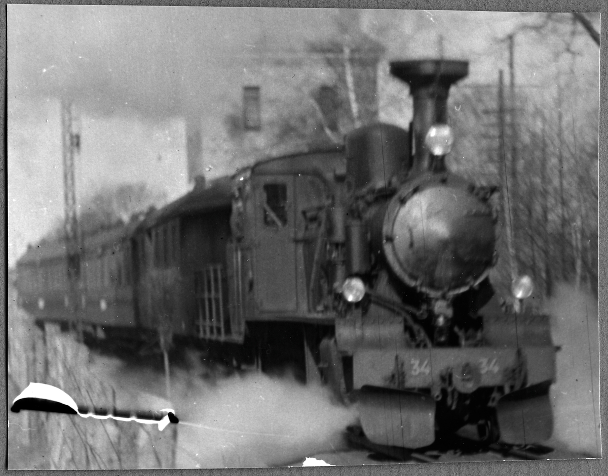 Titel: NVHJ lok 34 med persontåg vid utfarten från Jenny station.