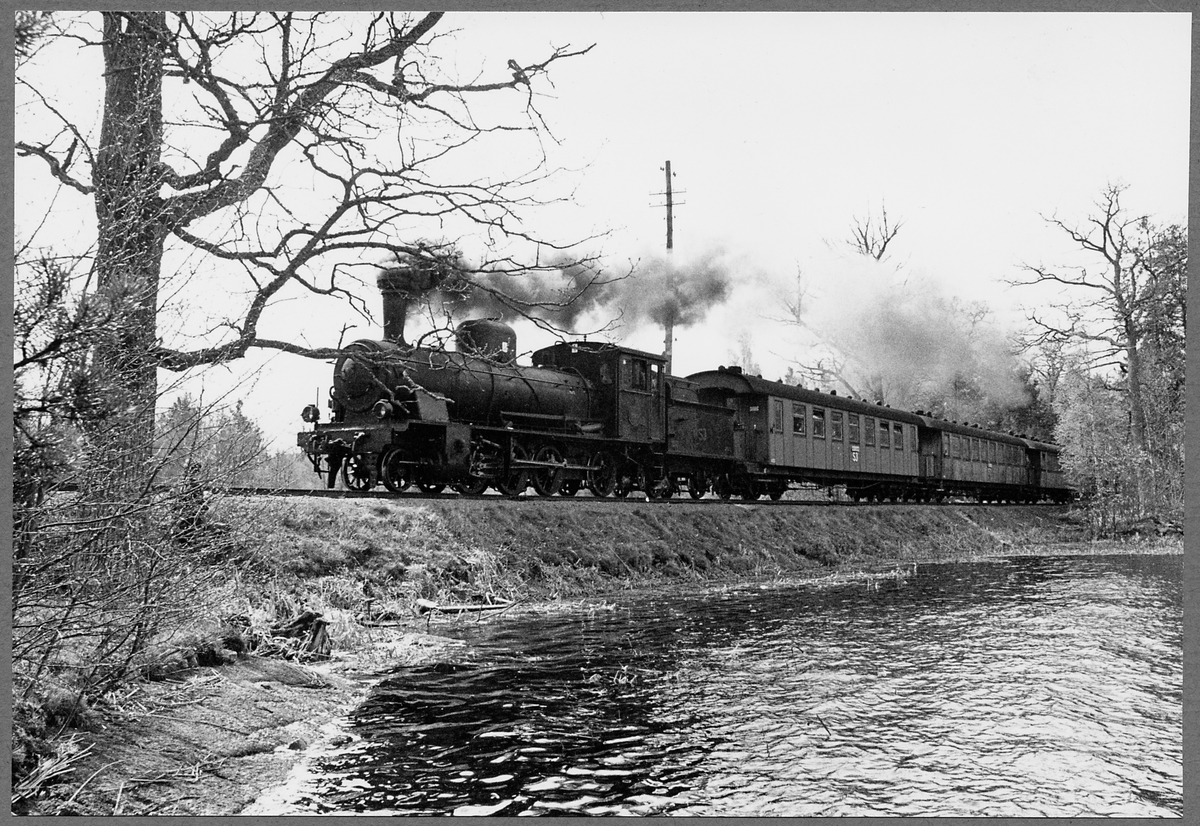 Persontåg på linjen mellan Ankarsrum och Fagersand. Ånglok, Statens Järnvägar, SJ Gp 3043, tillverkat 1943 av Aktiebolaget Svenska Järnvägsverkstäderna, ASJ Falun.