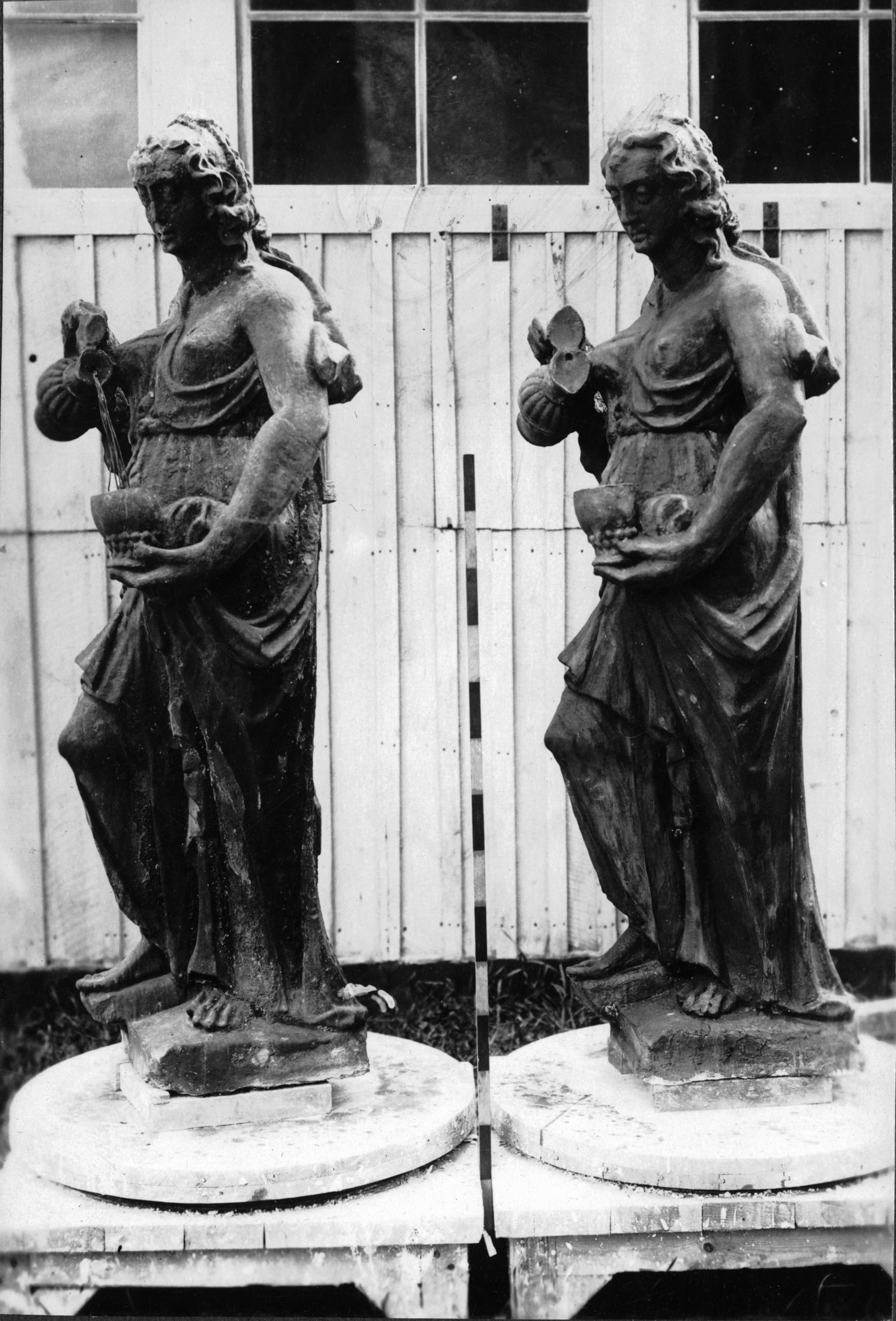 Skulptur föreställande Temperantia. Gipsavgjutninget och originalet.