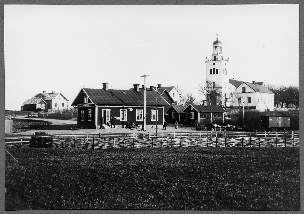 Titel: Järnvägsstationen och kyrkan i Skärkind vid sekelskiftet.