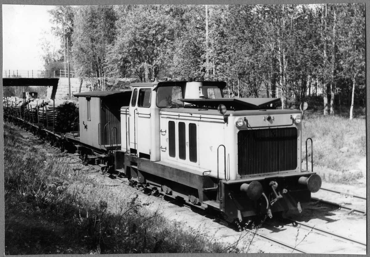 Titel: MaSJ diesellok 2 med timmervagnar. Marma-Sandarne järnväg.