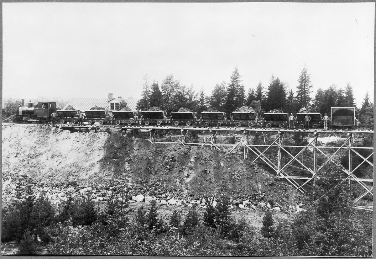 Titel: Från byggandet av Ostkustbanan. Gruståg i Njurunda.