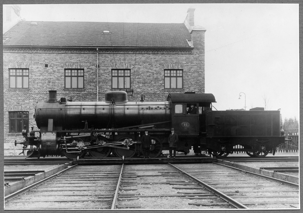 Gävle - Dala Järnväg, GDJ N3 60 vid bolagets verkstad på Nynäs, kontorshuset i bakgrunden.