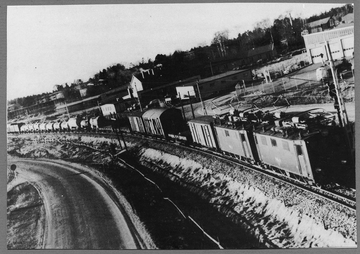 Nordmark-Klarälvens Järnvägar, NKlJ ellok med godståg på linjen mellan Skoghall och Karlstad Östra.