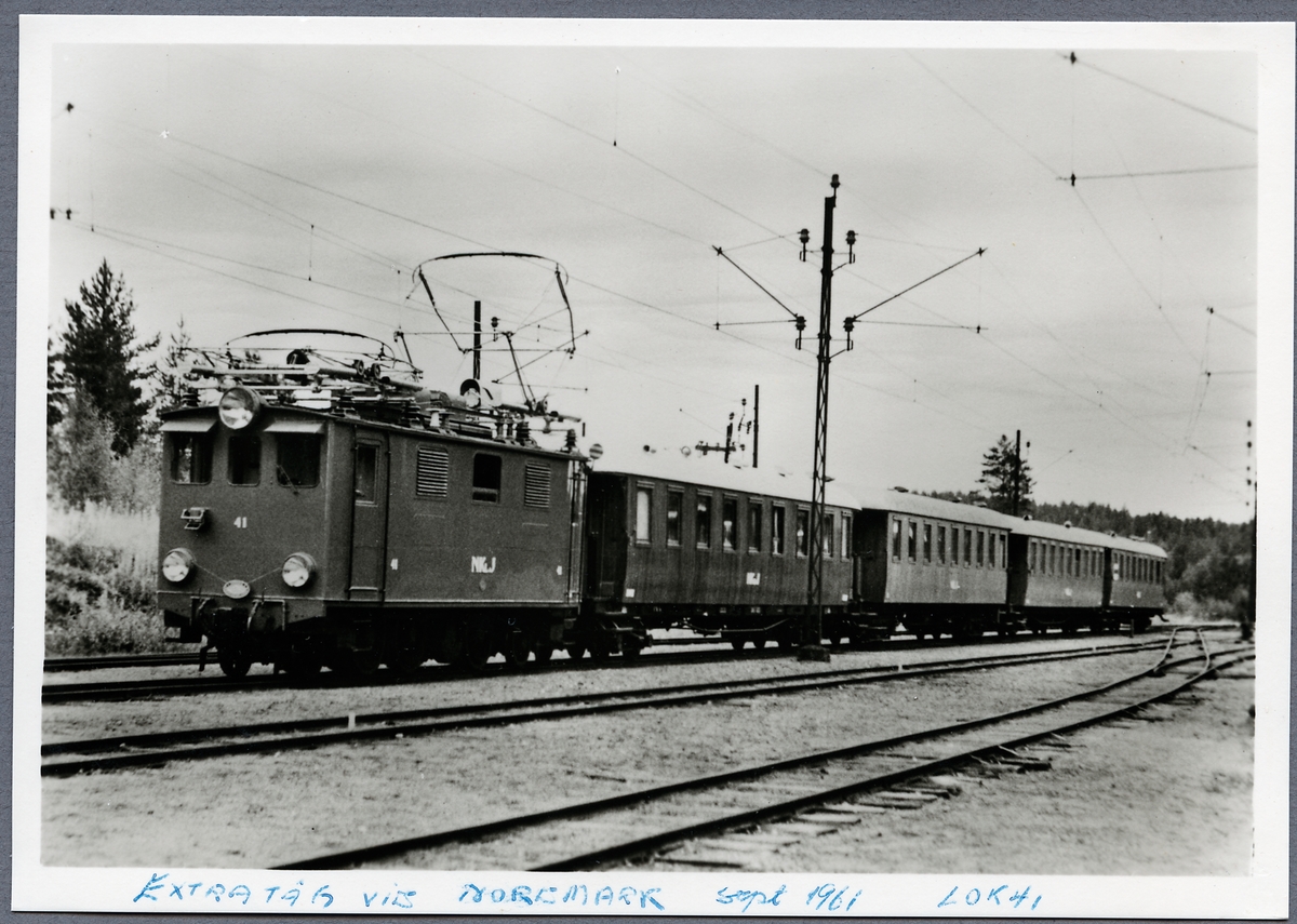 Nordmark-Klarälvens Järnvägar, NKlJ ellok 41 med extratåg vid Nordmarks station