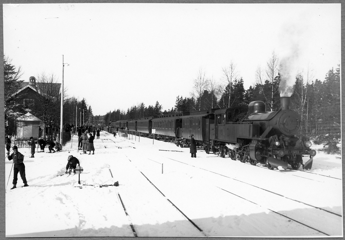 Göteborg - Borås Järnvägar, GBJ S 23 med personvagnar vid Hindås station.