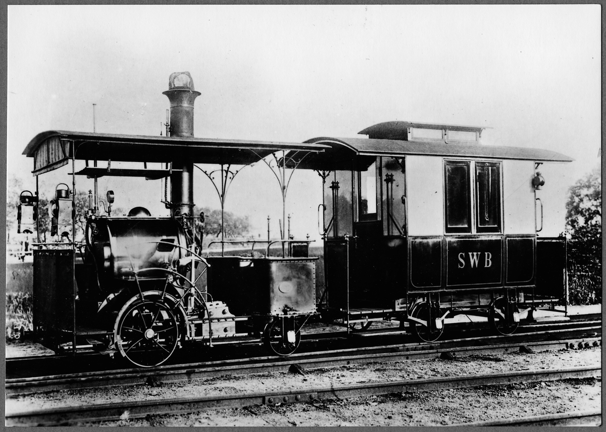 Stockholm - Västerås - Bergslagens Järnvägar, SWB ångdressin med släpvagn från år 1892.