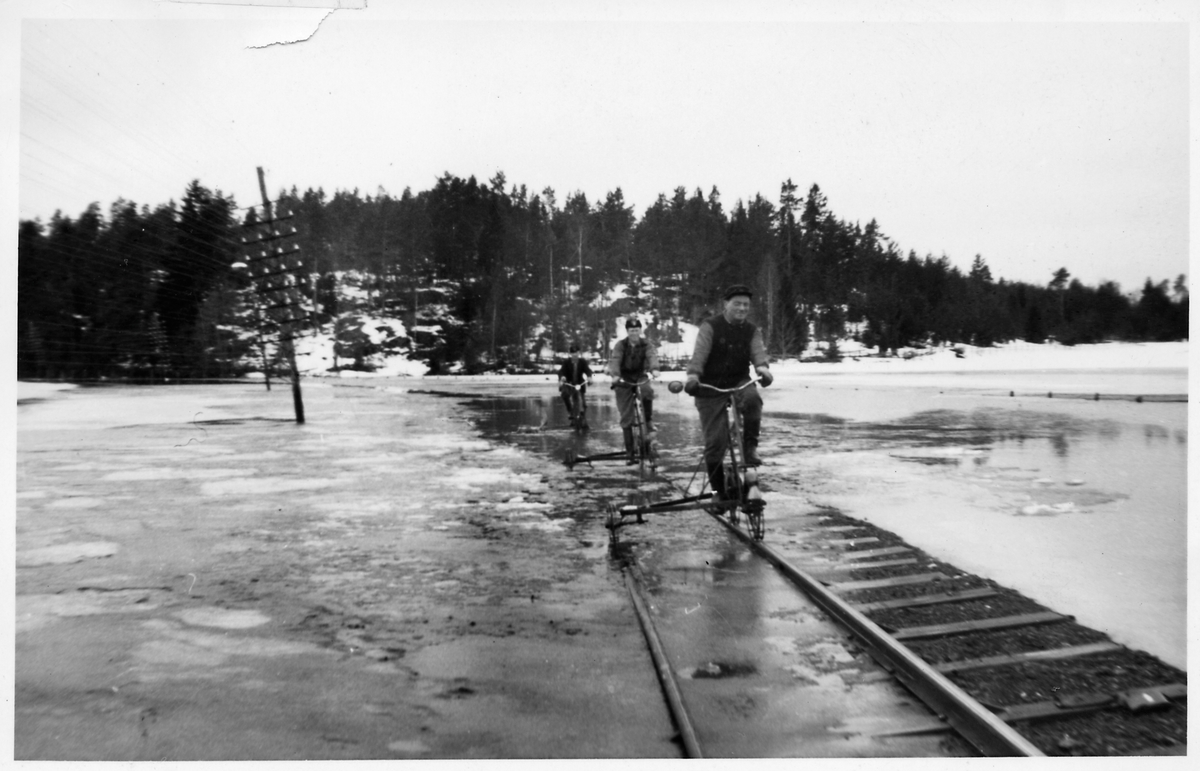 Banbevakning sker med dressin längs Vikbolandsbanan, någonstans på linjen mellan Jonsberg och Arkösund.