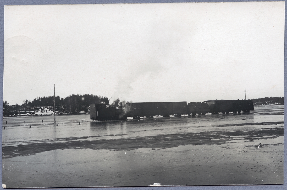 Titel: Översvämning på Vikbolandsbanan på linjen mellan Arkösund och Jonsberg.
