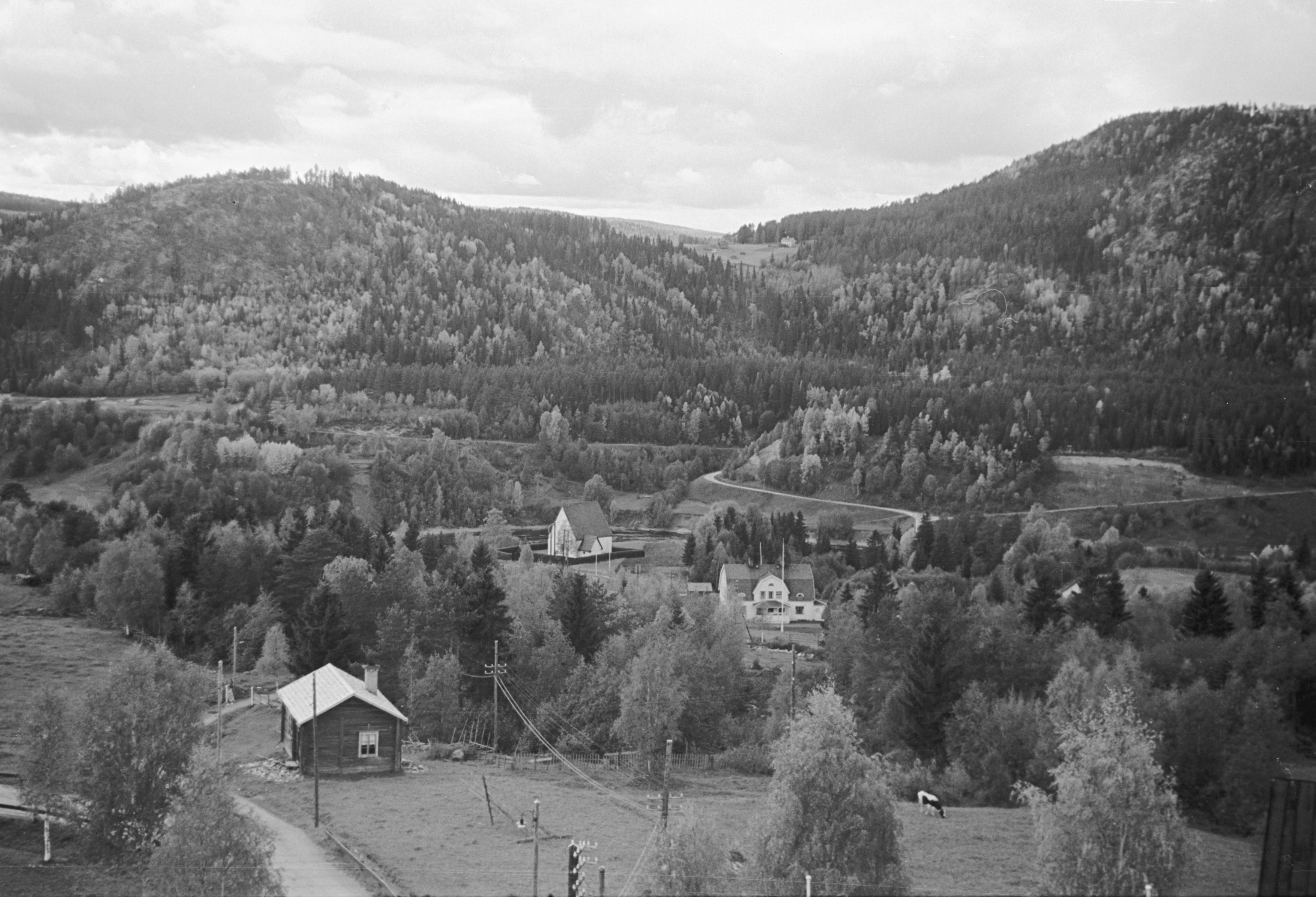 Kyrkan från nordöst med omgivningar. Bilden avser att illustrera kraftledningens läge i förhållande till kyrkan.