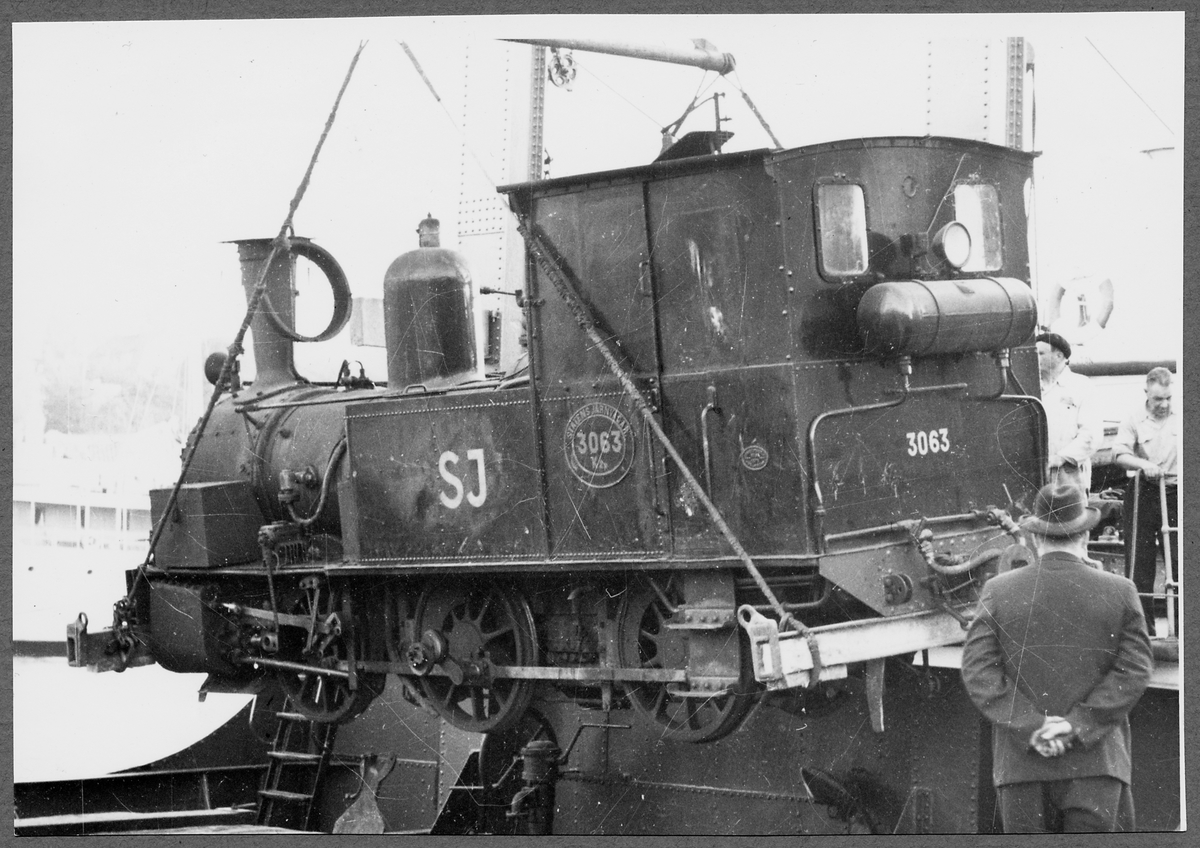 Statens Järnvägar, SJ K2p 3063 "Gotland" lastas ombord i Visby hamn.