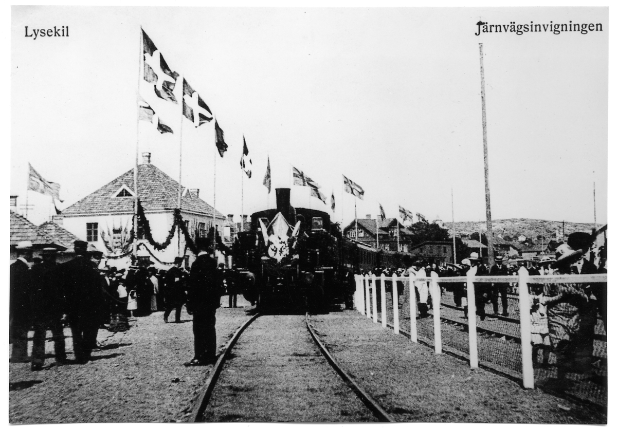 Titel: Invigning av Lysekils Järnväg. Invigningståg draget av LyJ lok 1.