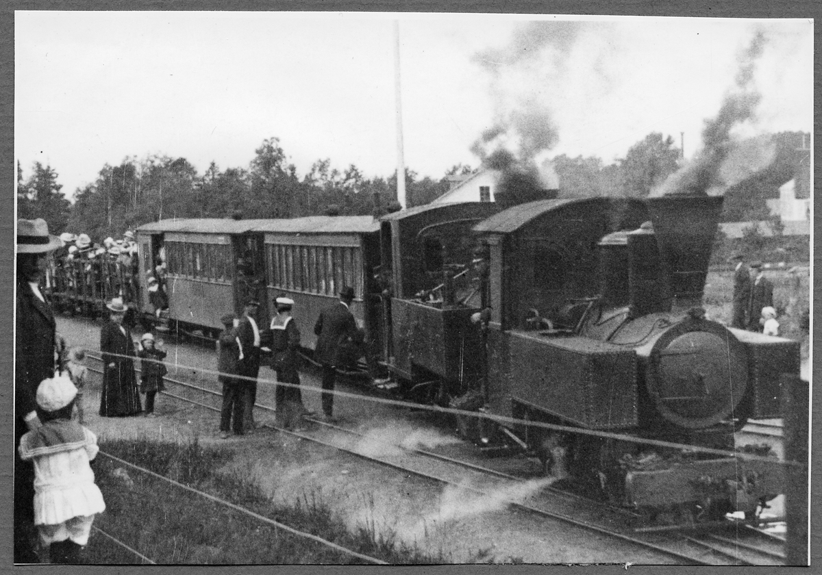 Anneberg - Ormaryds Järnväg, AOJ lok 1 och 2. Dubbla lok behövdes för att dra det tunga tåget till Bokdungefesten.