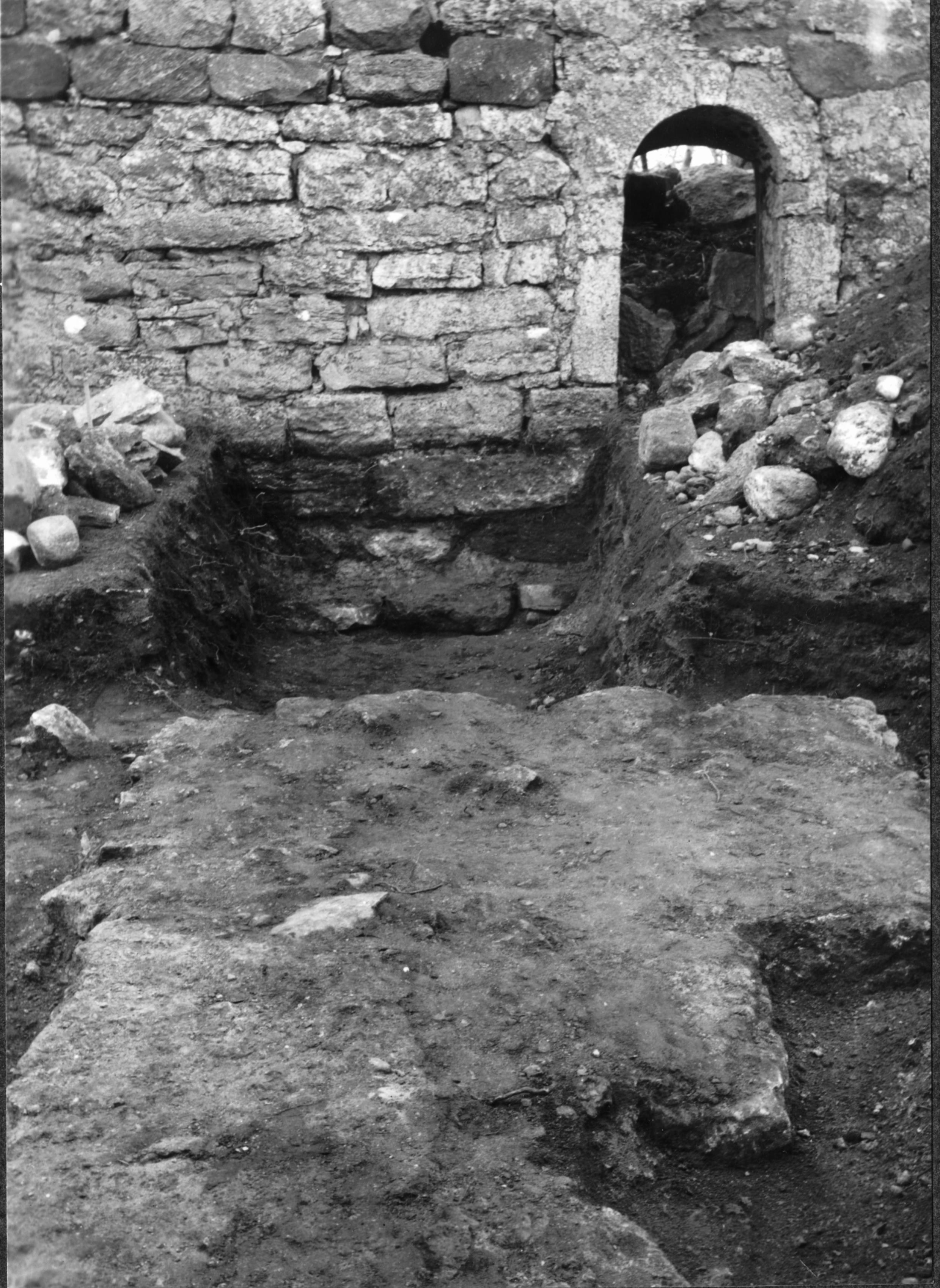 Kastalen, "vindbryggegångens" brohuvud. Detta är i söder avbrutet. I bakgrunden kastalens fotsula. Foto från öster. Foto nr. 5.
