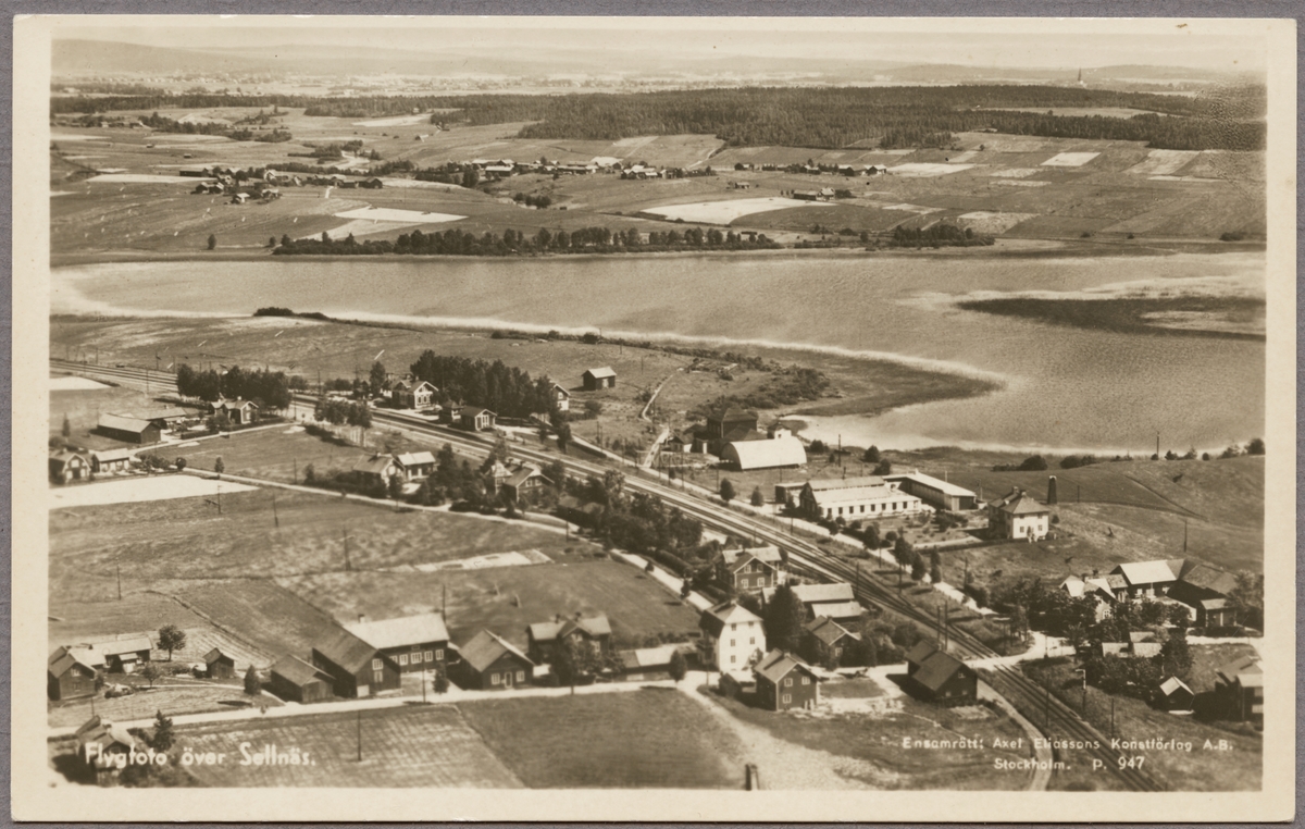 Titel: Flygfoto på samhälle vid Sellnässjön.