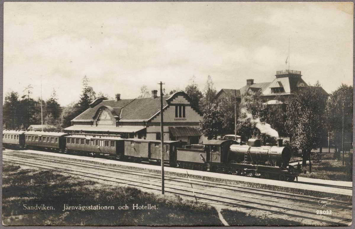 Titel: Sandviken Järnvägsstationen och Hotellet.