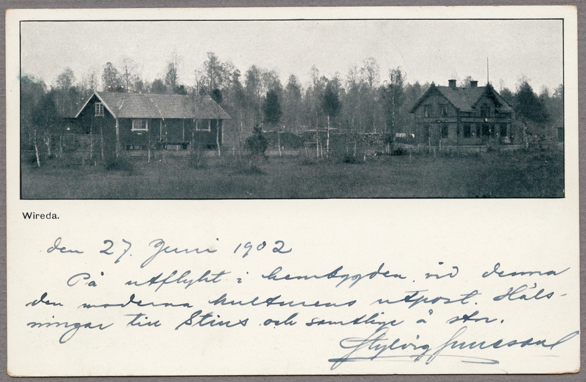 Titel: Vy på stationsområde med stationshus och magasin i bild.