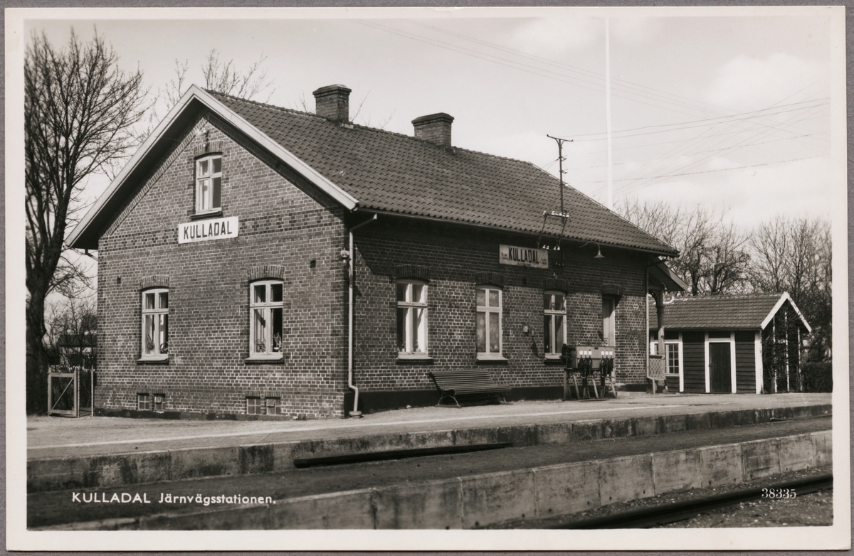 Titel: Spårsida av station och stationshus med uthus i bakgrunden. Ursprungliga namnet var Fosie.