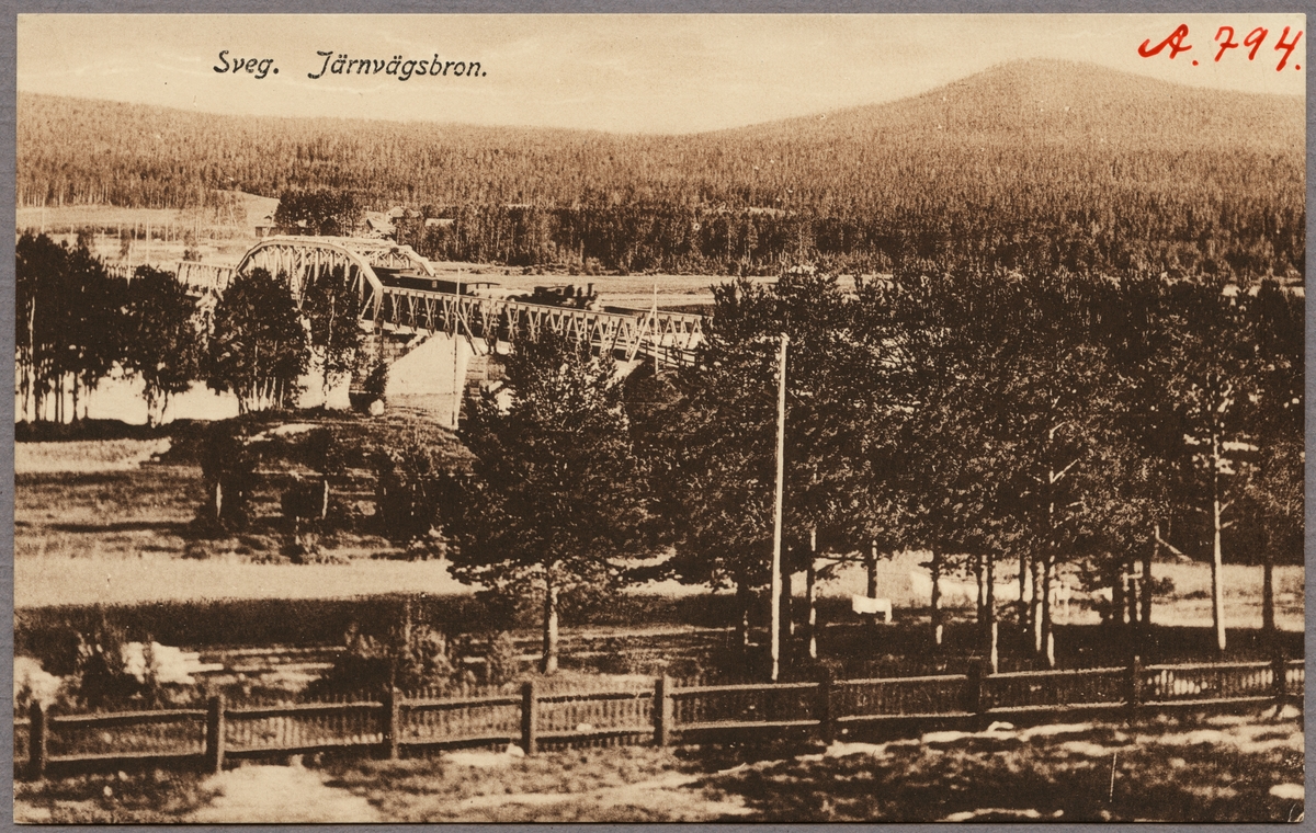 Titel: Vid järnvägsbron över Ljusnan på linjen mellan Sveg och Bäckedal.