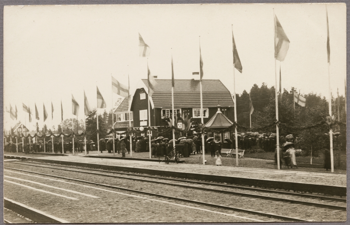 Titel: Invigning av banan Sveg - Hede på järnvägsstationen i Sveg 1924.
