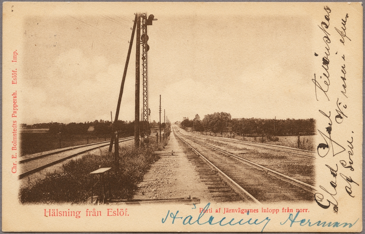 Järnvägsspår från Eslöv, på bandelen Eslöv-Hässleholm.
