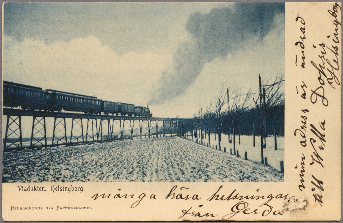 Tågset på den nybyggda viadukten, på bandelen Helsingborg-Ängelholm.