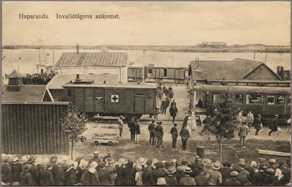 Titel: Krigsinvalider ankommer till Haparanda i samband med Första Världskriget.