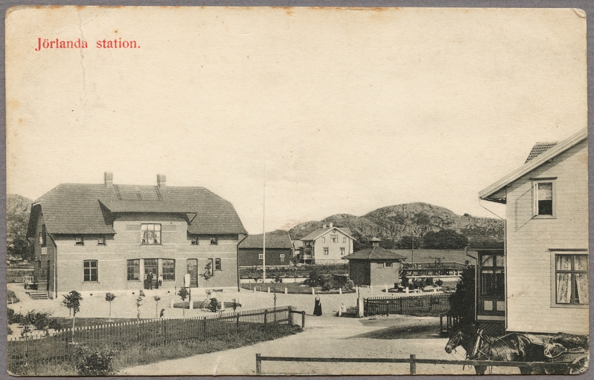 Baksidan av stationshuset, mot bebyggelse, i Jörlanda.