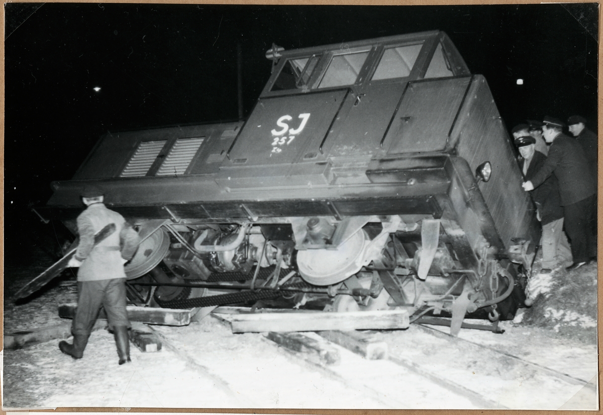 Statens Järnvägar, SJ Z4p 257. Lokomotor har spårat ur. Påbörgade bärgningsarbete i Västervik.