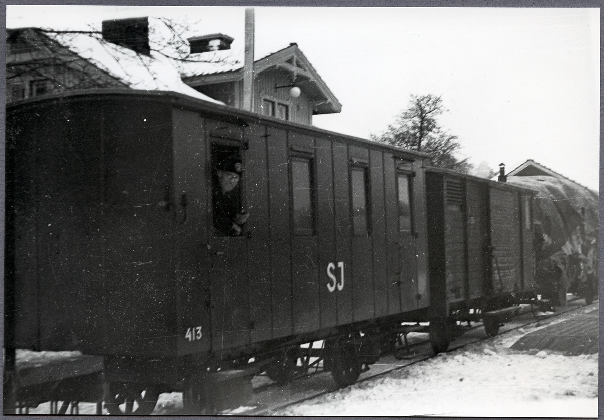 Statens Järnvägar, SJ CFp 413 på Storsjö station. Konduktör Ivar Bengtsson.