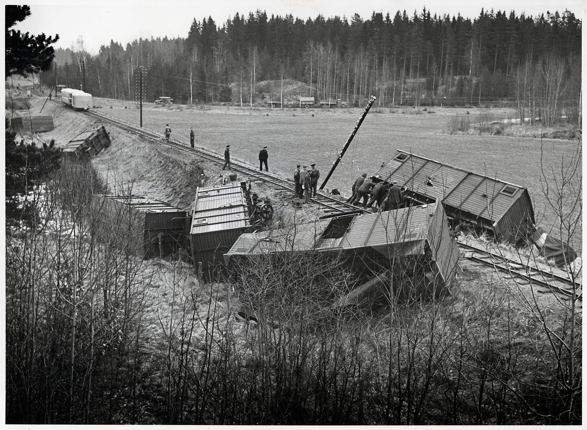 Titel: Godståg urspårat på linjen mellan Bersbo och Åtvidaberg vid Edshyttan.