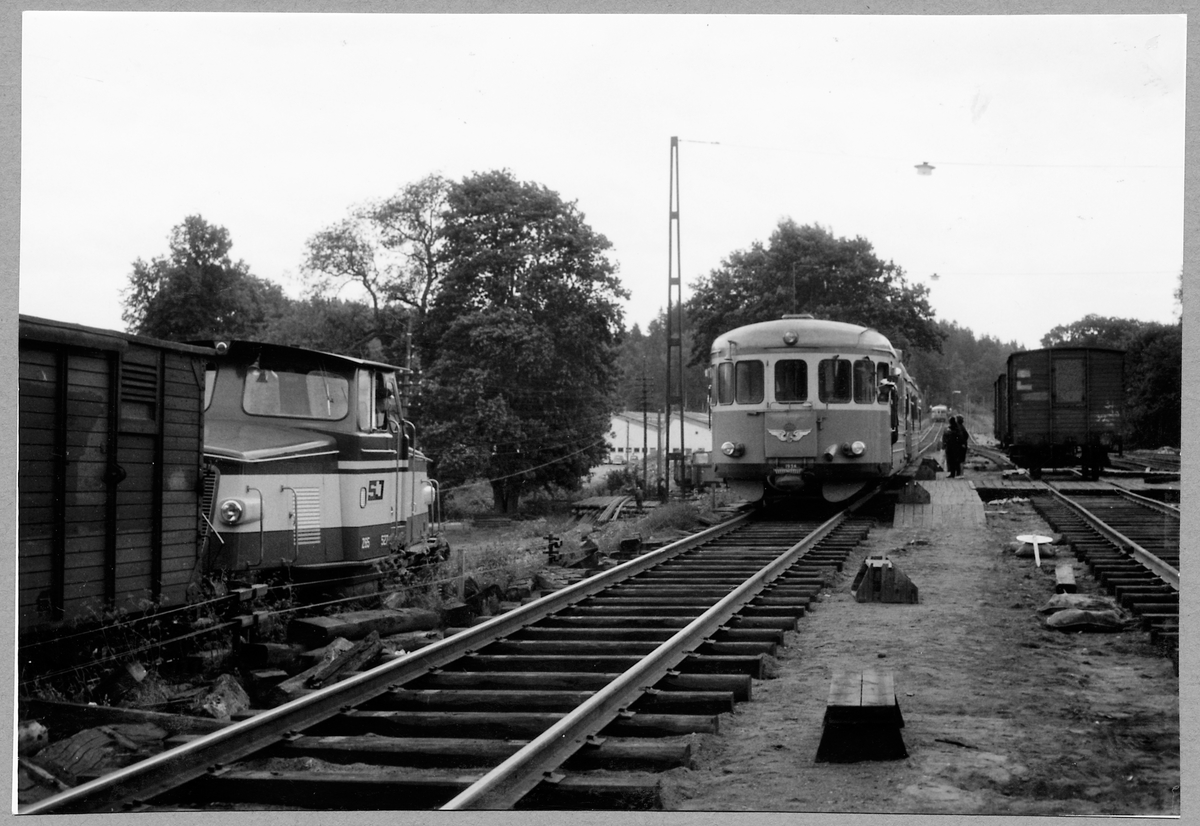 Titel: Möte med lokalgodståg och persontåg vid Överum station.
