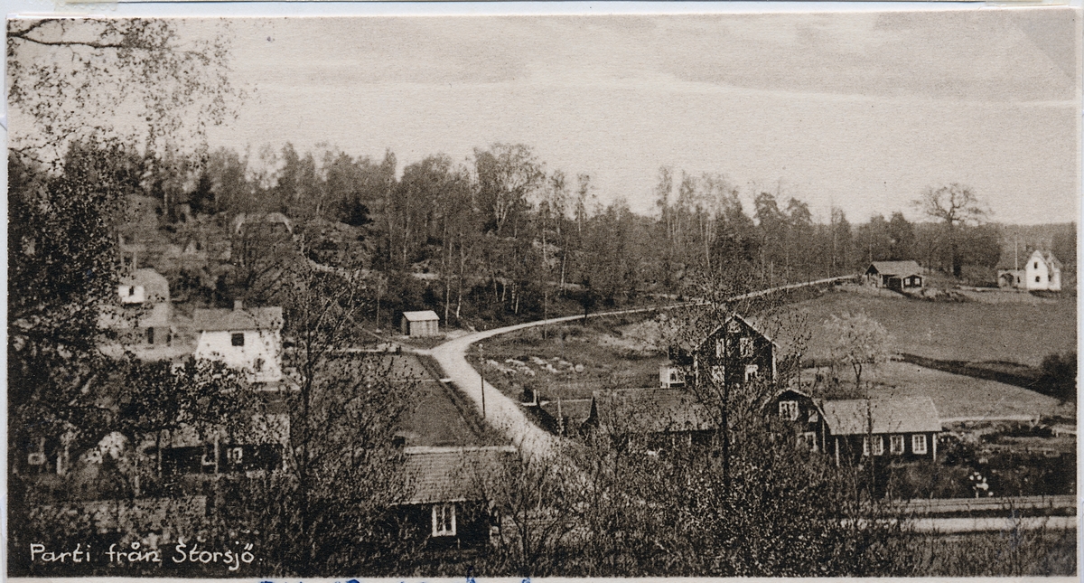 Titel: Parti från Storsjö med banvaktstuga i Åhagen.