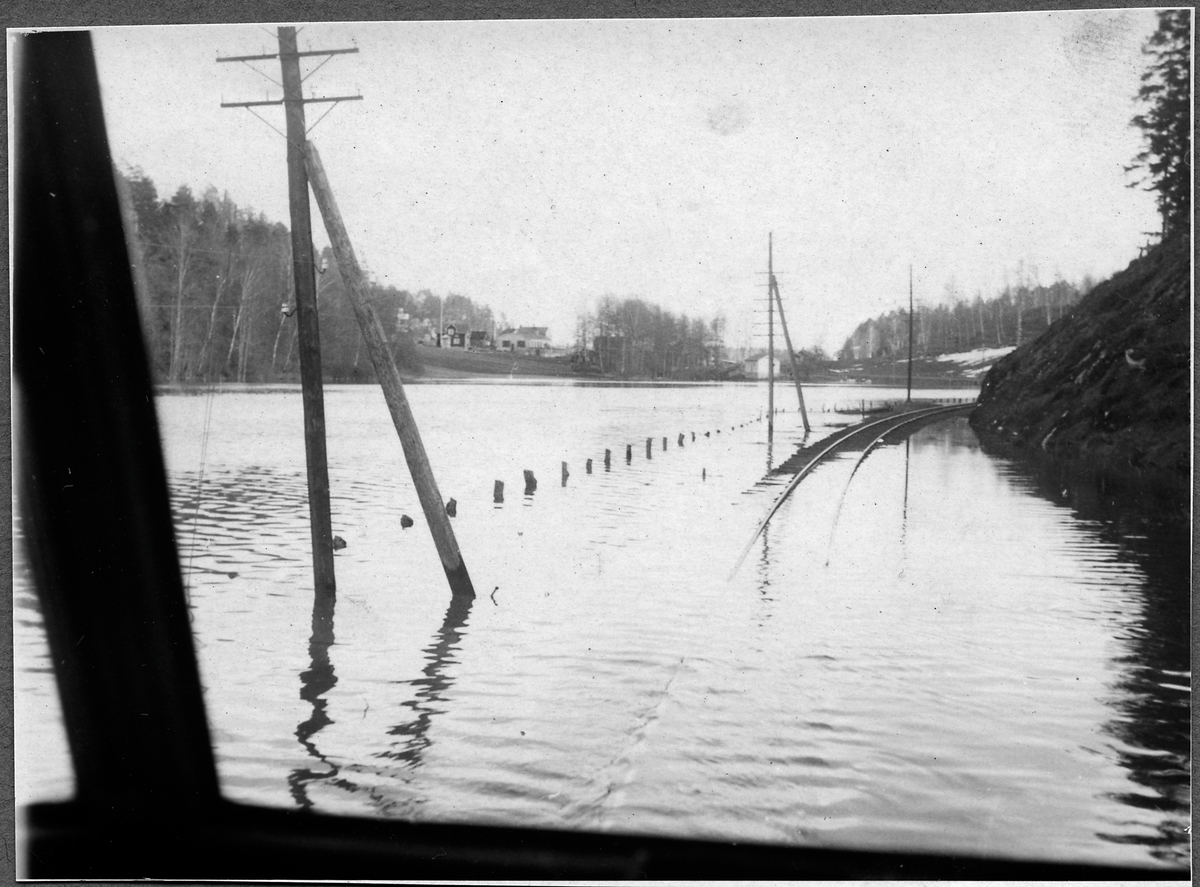 Titel: Översvämning i Uknadalen på linjen mellan Storsjö och Nelhammar.