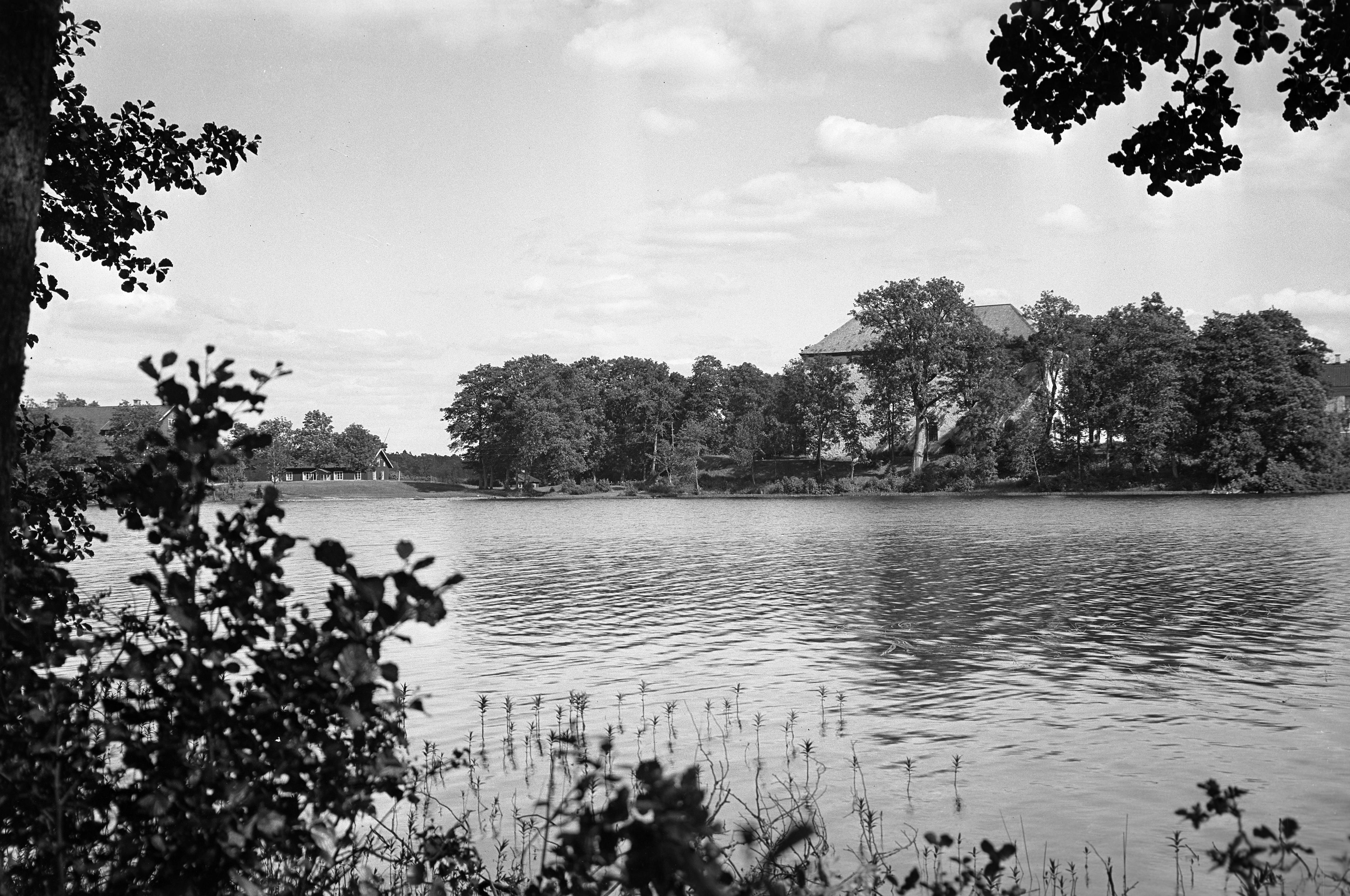 Medeltidsborgen "Torpa stenhus" från sjösidan.