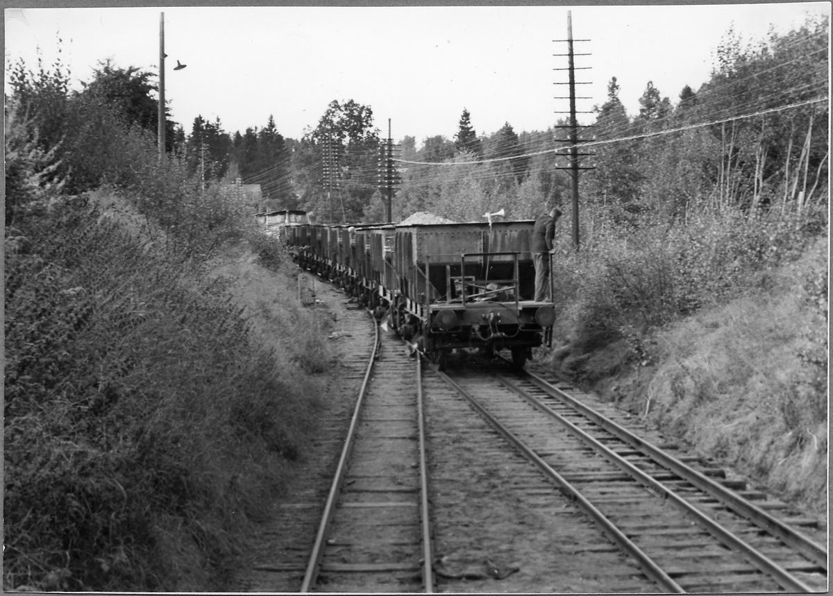Titel: Gruståg vid norra växeln vid Falerum station.