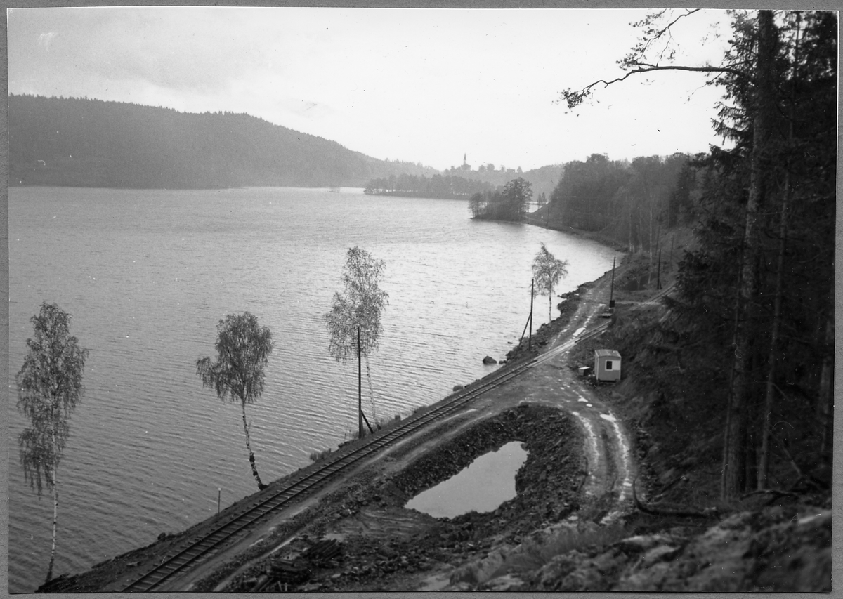 Titel: Breddningsarbetena linjen Forsaström - Falerum. sommaren 1962. Linjen utmed Båtsjön.