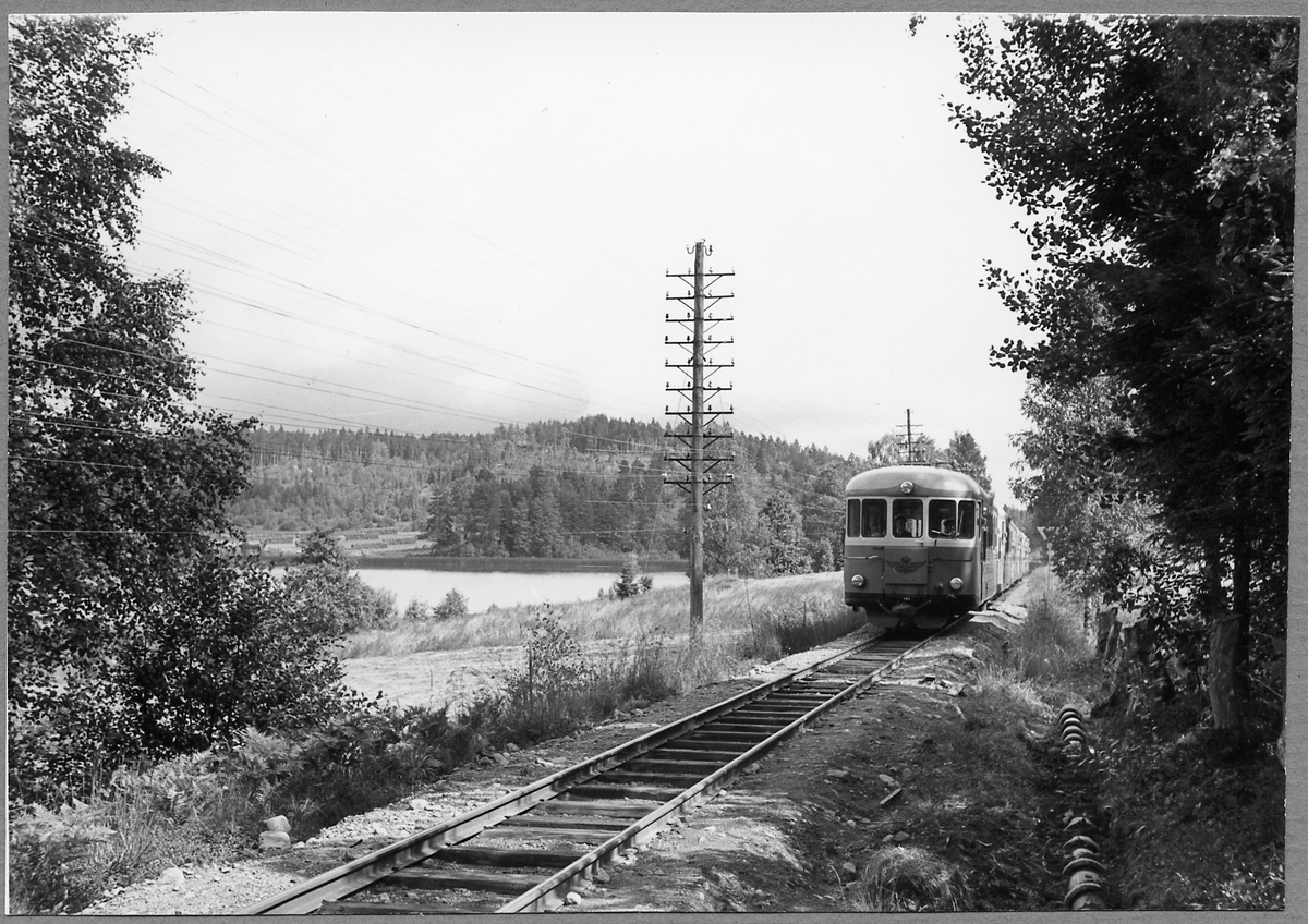 Titel: Motorvagnståg 1506 på linjen Forsaström - Åtvidaberg vid Bergbackarna 1962.