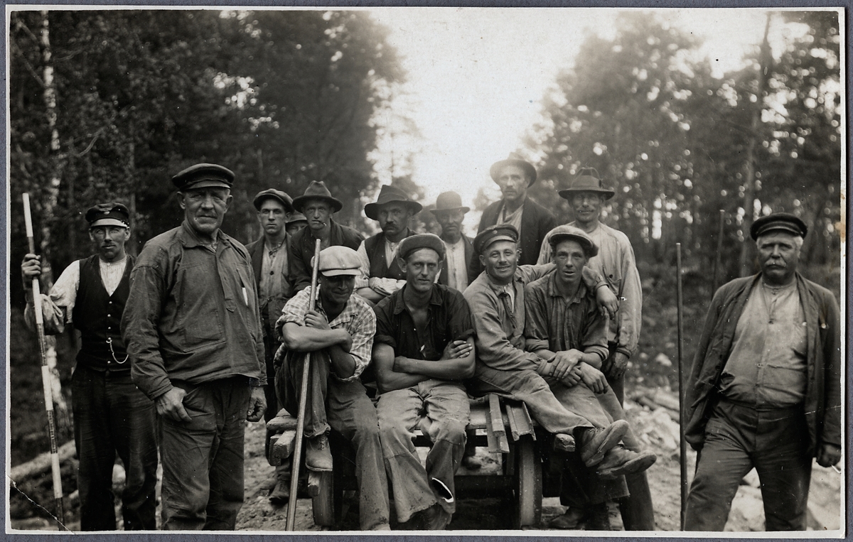 Titel: Banavdelningens arbetslag med banvakt Kristiansson som lagbas.