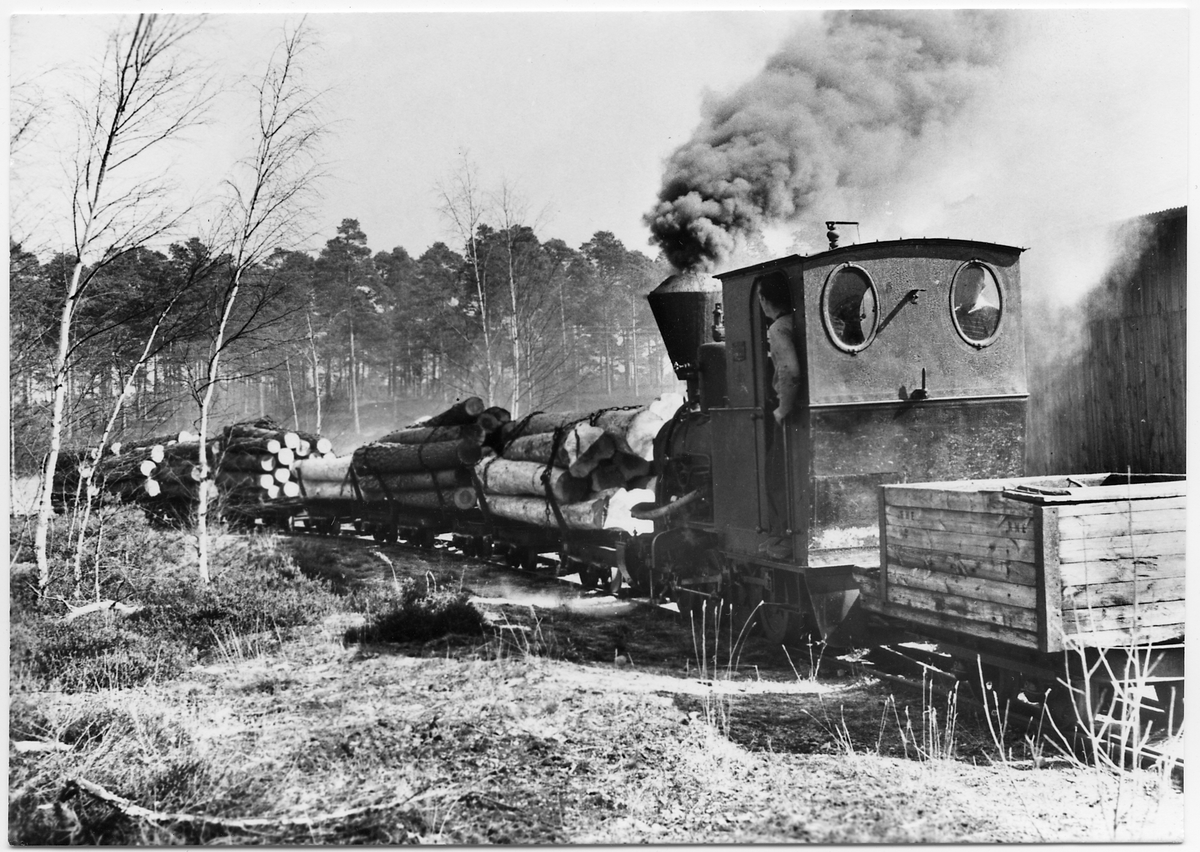 Böda Skogsbanas lok 1 "Mormor" med 7 koppel timmer.
