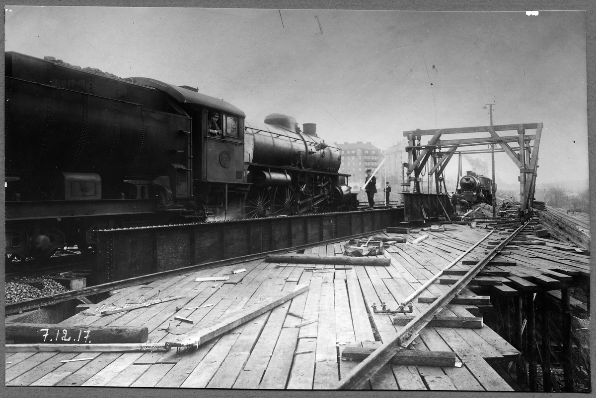 Statens Järnvägar, SJ F1201 provbelastar Karlsbergsbron på linjen mellan Karlberg och Tomteboda nedre.